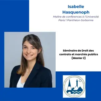 Isabelle Hasquenoph présentera par ailleurs une conférence mardi 11 novembre (17h, salle de conférences de la faculté de droit) portant sur "50 ans d'extension de la mise en concurrence dans la commande publique".